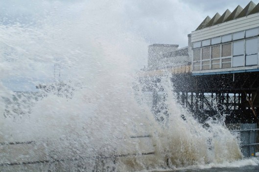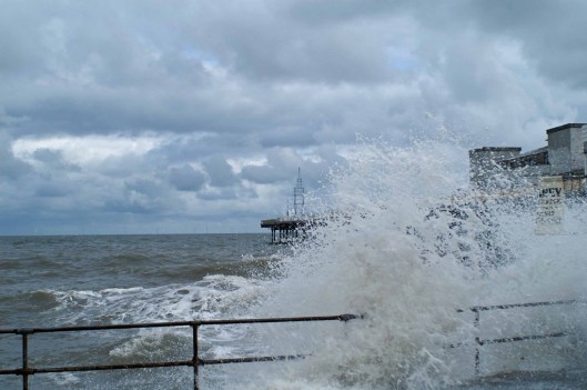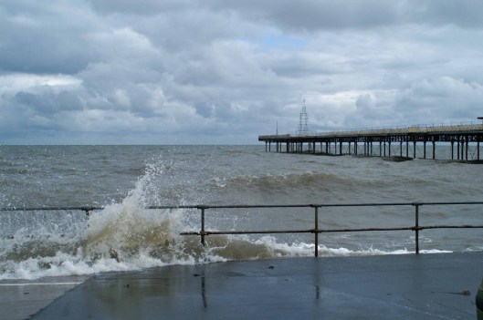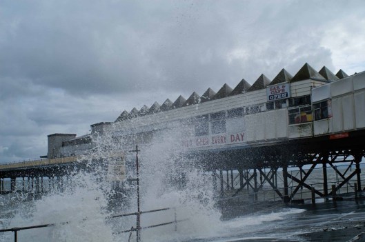 Although it wasn’t raining when we left the house, it was quite breezy and the sea at Rhos was quite rough, but a bit further round the bay in front of the old pier at Colwyn, it was wild, with waves crashing over the lower sea walls. We sat in the car watching for a while, but I had to get out and take some photographs.