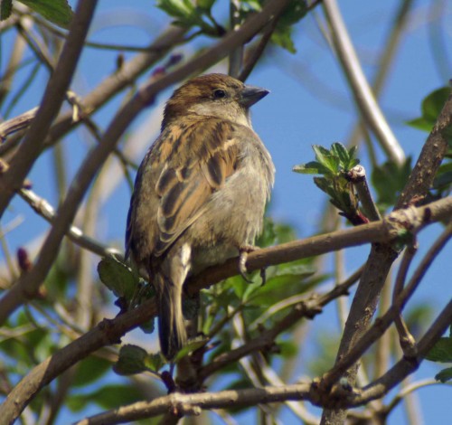 The garden hedges were bursting with House Sparrows, and I can see that at least two pairs are beginning to nest within the spiny pyracantha; more are occupying a space they have found high up in the eaves of the house at the front. Their constant cheerful cheepings and chatterings ensure I am aware of their companionship. They may not be colourful, nor can they sing, but I love them.