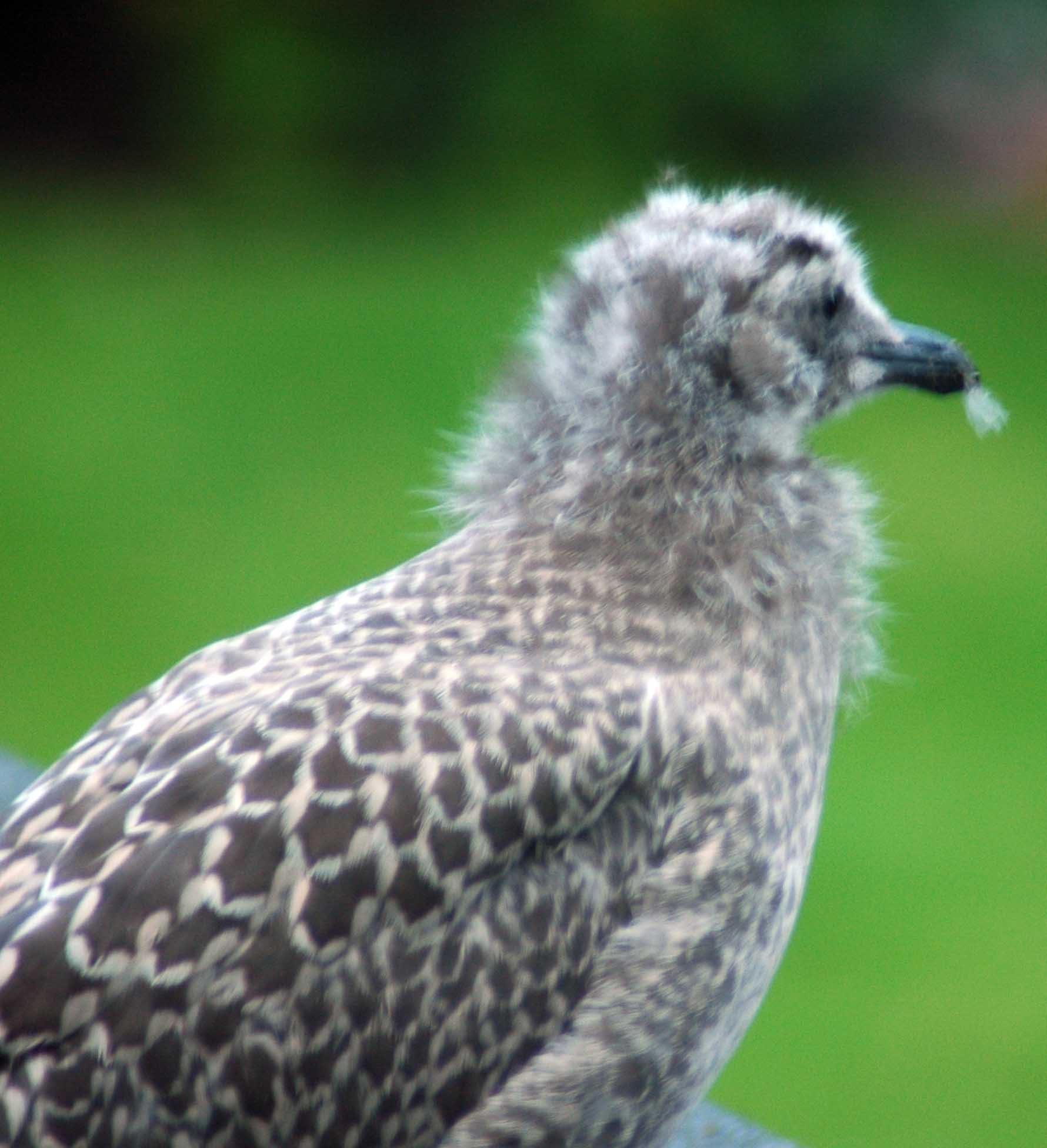 A very newly fledged gull, the offspring of pair number two