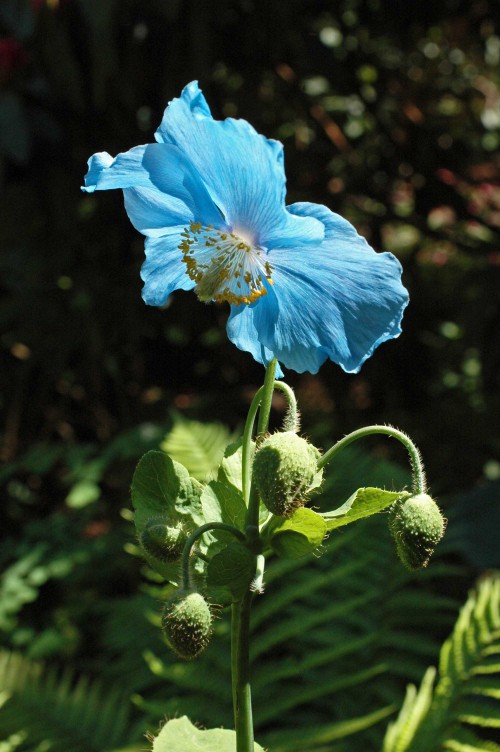 and beneath the tree beautiful blue Meconopsis, or Himalayan Poppy