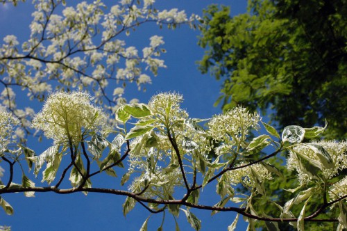 Laburnum, or Common Laburnum – Laburnum anagyroides is a species of small tree in the subfamily Faboideae of the pea family Fabaceae. The trees are native to the mountains of southern Europe from France to the Balkan Peninsula. The trees are deciduous. The leaves are trifoliate, somewhat like a clover; the showy flowers are yellow, fragrant and held in pendulous racemes 10–30 cm (4–12 in) long in spring, which makes them very popular garden trees. InL. anagyroides, the racemes are 10–20 cm (4–8 in) long, with densely packed flowers. All parts of the plant are poisonous, and can be lethal if consumed in excess.