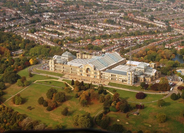 Alexandra Palace is set atop a steep hill located between Muswell Hill and Wood Green, in the north of the city. Alexandra Park was opened by the renowned landscape architect Alexander McKenzie as a pioneering Victorian leisure Park and centre for education and entertainment.Originally opened in 1873 but rebuilt in 1875 following a destructive fire, it was designed to serve as a public centre of recreation, education and entertainment and as north London’s counterpart to The Crystal Palace in south London. It was always intended as “The People’s Palace” and later nicknamed “Ally Pally” (supposedly by Gracie Fields)