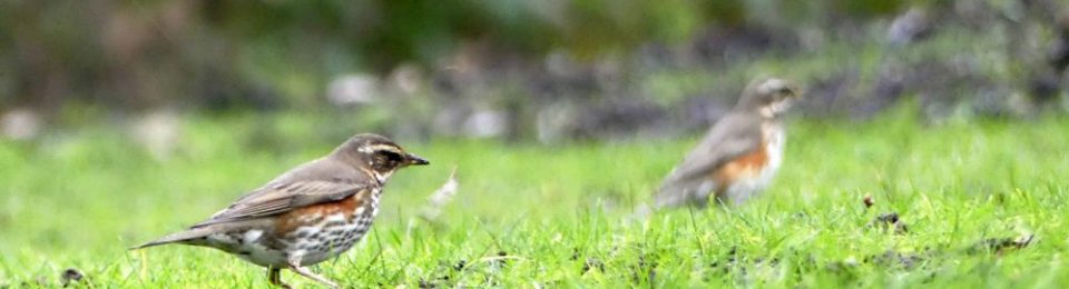 As we walked back down the hill to reach the pavement alongside Alexandra Palace Way, I spotted a flock of birds foraging on the grass. Beautiful Redwings.