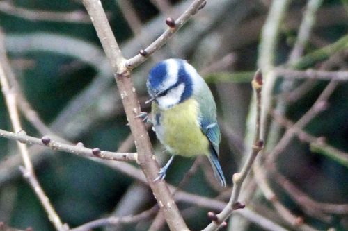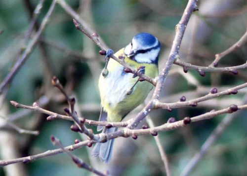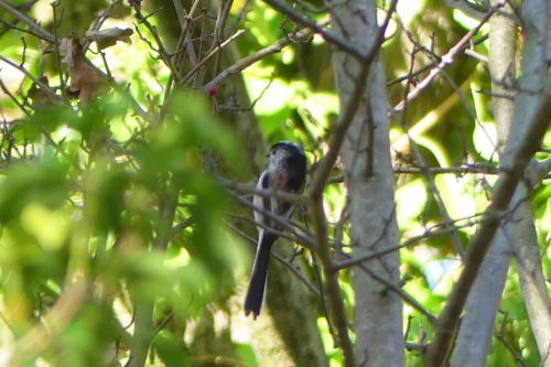 I hear the contact calls of Tits and stand still hoping it means a feeding party are heading my way. It did indeed and now I don’t know where to look first as Long-tailed, Blue and Great Tits swoop and dart around the branches of the nearby trees. Some venture lower down giving me eye-level views. There were less birds in the party than those I saw a few weeks ago, so maybe they’ve split into smaller numbers as the availability of food has diminished. They seem to be travelling faster too, not lingering for long in one spot.