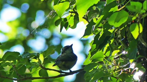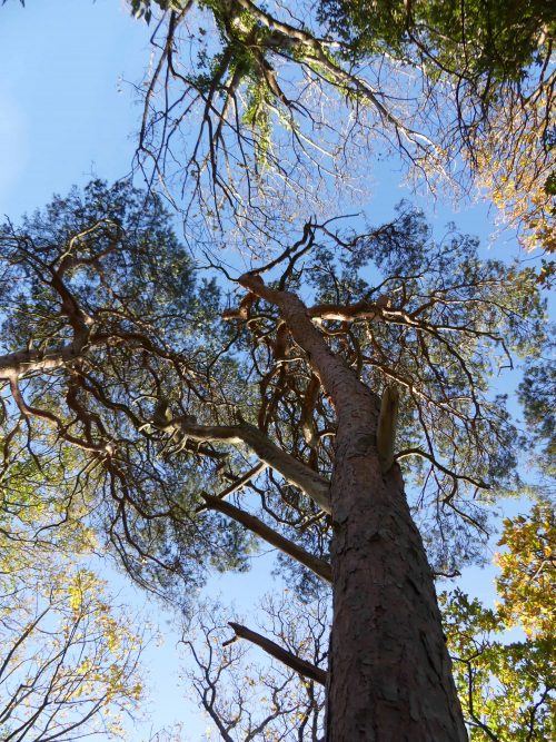 I wasn’t too far from where the Scots pines are gathered. Popular trees with the Tits I wondered if that was where they were headed. The trees are tall and positioned on the edge of the woodland; many have been distorted by exposure to winds and the search for light. With no low branches, their foliage is all on their crowns, so sighting anything as small as a tit is tricky, especially in sunshine. The light is beautiful up there though; I love these upward views of the tree canopy, especially on blue sky days. I’m thinking I would like to see a Coal tit though, haven’t seen one for ages.