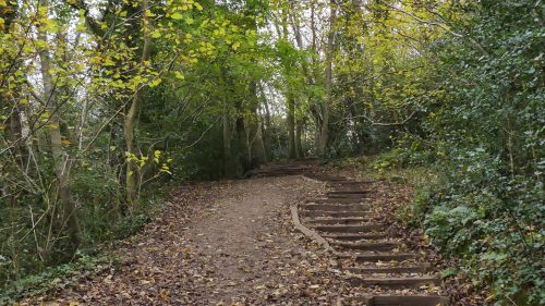 A short way further on you are back out onto the wider brighter more open Woodland Trail. Going down the wooden steps takes you to the car park, or as I opted, to loop around onto the lower part of the trail to get back to where I started.