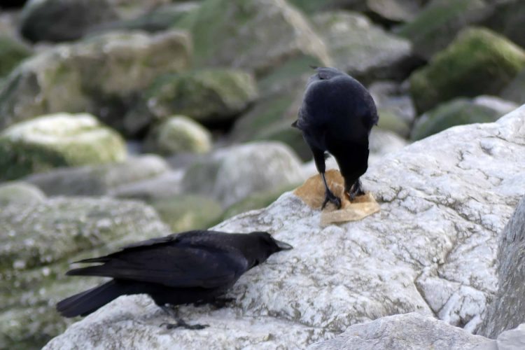 Perched on top of a high rock, a jackdaw gleaming brightly in the sunlight sat sentry-like surveying his kingdom, his steely blue-grey eyes matching the colour of the sky behind him.
