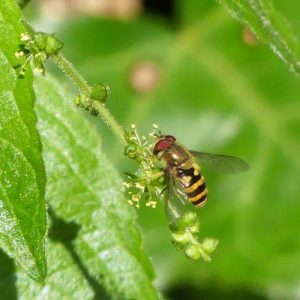 Stepping onto the Woodland Trail that circuits the Nature Reserve it was hot – too hot now for insects such as hoverflies that would all be hiding away under leaves or on tree branches. Birds are mostly beginning a ‘time-out’ in which to rest after a busy breeding season and to moult their old feathers and grow new ones, so it was very quiet. The total lack of a breeze was even keeping down the ever-present traffic noise from the valley below.