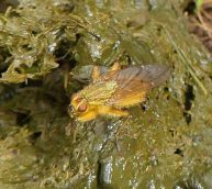 13:46 I walked towards the summit edge to look at the view and passed more bramble, which had a big orange and black fly feeding on its blossom; a distinctive orange and black, very bristly tachinid fly – Tachina fera.