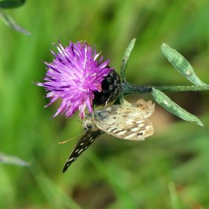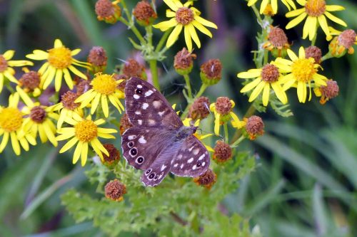 13:09 Back on the path I disturbed a Grayling that had been basking on the warm bare earth. There are never very many here on the Bryn, and there have been years when I haven’t managed to catch sight of one at all, so I was happy to see it, but sad I’d missed it. Fortunately it didn’t go far and after a fly around it landed back almost in the same spot. These beautifully-marked butterflies are so well camouflaged you can easily lose sight of them until they move or flash their eyespots.