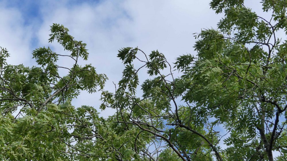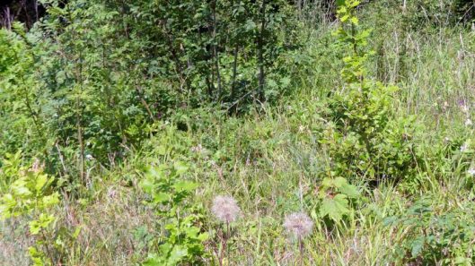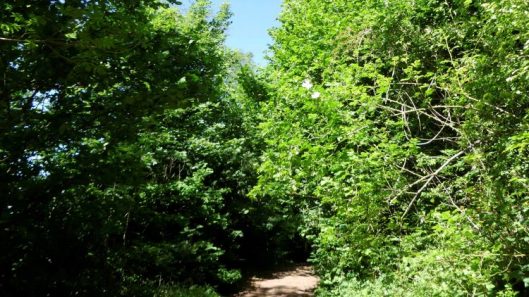 The nature of the vegetation on the exposed cliff-edge side of the Trail has evolved into an interesting area of what I think of as pre-woodland scrub, by which I mean it’s presently a mix of long meadow grasses becoming populated with patches of low-growing bramble, dog rose and young trees. I’m not sure if these trees are self-sown or were deliberately planted, perhaps a mix of both.