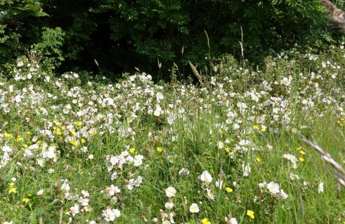 Frothy sunshine-yellow Lady’s Bedstraw brightens the grass and on this warm sunny day scents the air with the delicate fragrance of fresh-cut hay.