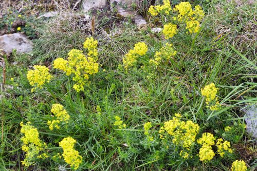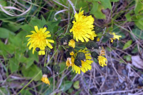 Wildflowers: Alexanders; Gorse; Primrose; Common Daisy; Lesser celandine; Carline thistle (dried); Common Whitlow grass
