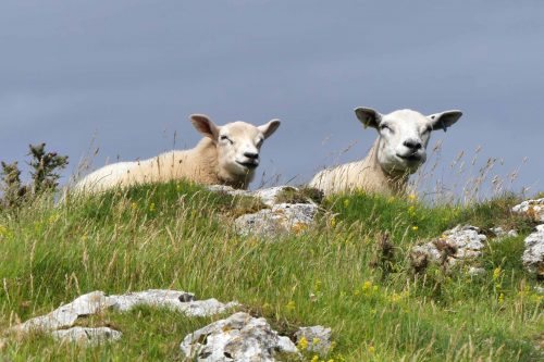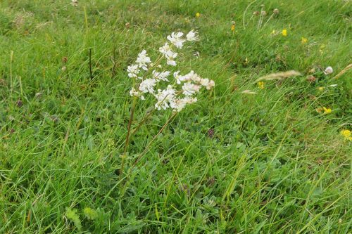 Although grazed by sheep and rabbits and exposed to the worst of the elements here, wildflowers can be found tucked down in the turf particularly around exposed rock. I spotted this little patch of white flowers, which on closer inspection turned out to be two different species. I couldn’t name either, but very kindly Suzanne posted a comment and suggested the tiny one with red-tinged fleshy leaves may be Rue-leaved saxifrage and the bigger more droopy one with fine stems as Common Whitlow grass. I will go back and get some better photographs of the little treasures.