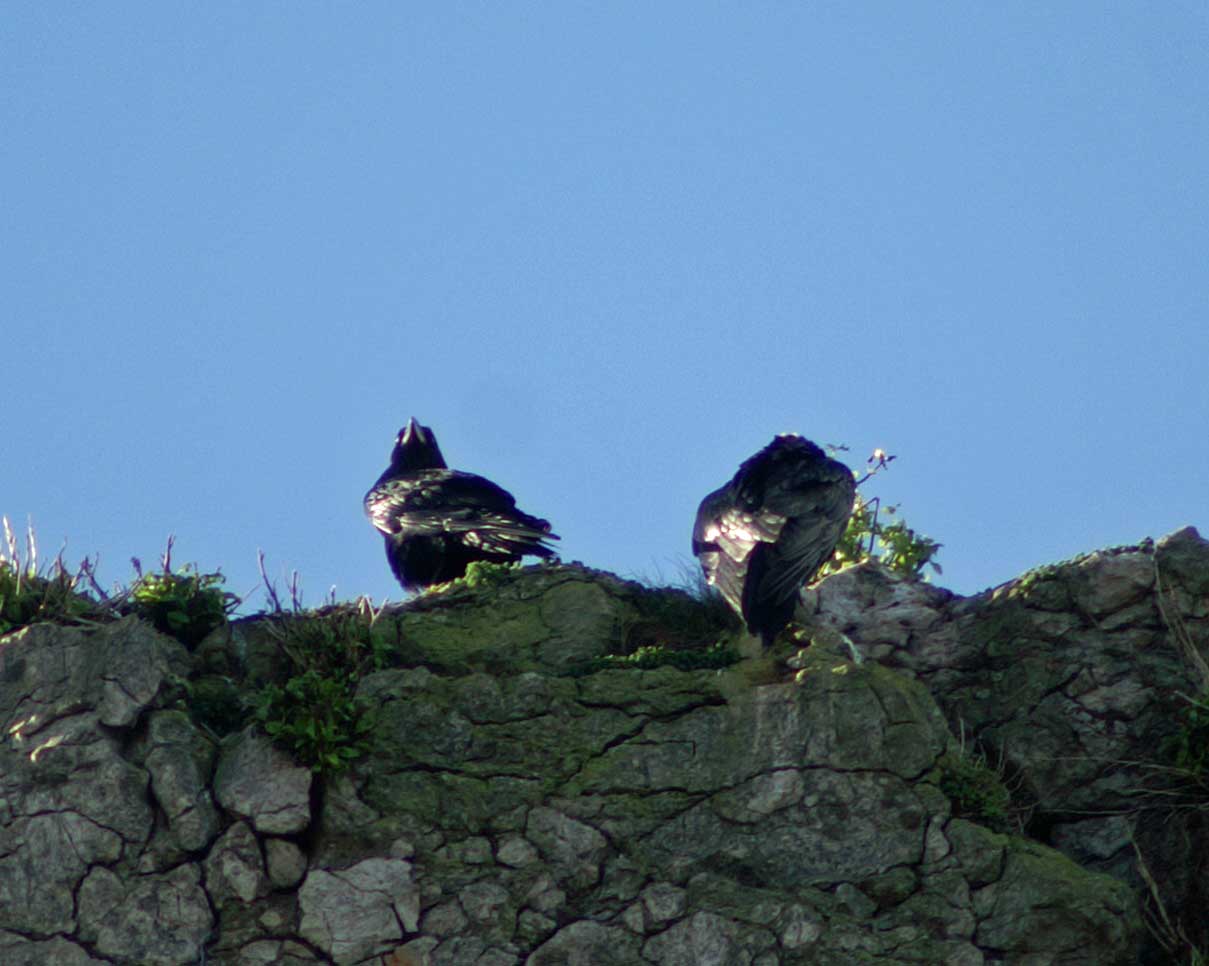 Looking over the edge of the cliff for signs of my target birds I saw what I thought were Cormorants until I saw the raised crest of one and realised they were Shags.They were far below me, so the quality of the image is not great, but you can see what they are from it.