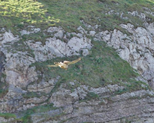 There were no signs of either Cormorants or Guillemots on this side of the cliff so I carried on walking towards its other more easily visible side. I hadn’t gone far when I spotted a bird flitting about between rocks near the edge; a handsome male Northern Wheatear. It was slightly below me behind a bit of a ridge, so partly hidden from its view I managed to watch it for some time with out disturbing it.