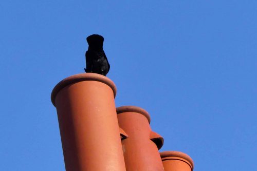 I disturbed a flock of Jackdays that had been foraging in the clifftop grass. In my picture the buildings on the top of the hill in the background are on the Great Orme Summit.
