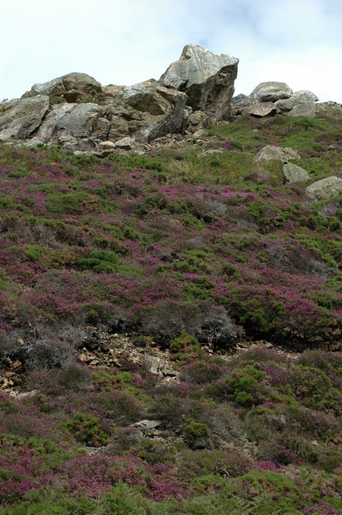 Conwy Mountain is beautiful now, it’s rocky cliffs and crags are coloured and softened with masses of pink/purple heather and the lower slopes are clothed with a mantle of ferny green bracken.