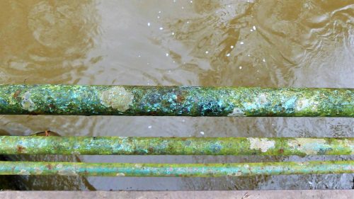 From that higher path there is a view looking down onto the pool showing where the water flows on under the bridge. Some of the water exits naturally as a stream, but some is diverted via pipes from which water pours rather inelegantly.