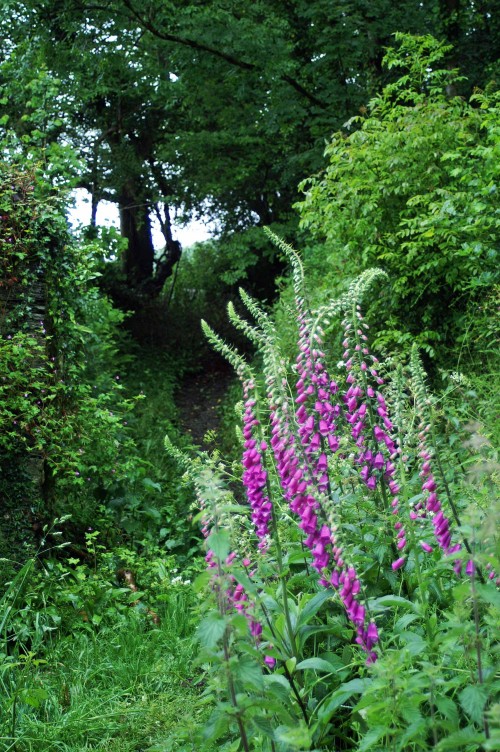 The track passes a sheer cliff of limestone. Its surface is frequently damp, sometimes wet and its base is covered with a lush, bright green shag-pile carpet of moss.