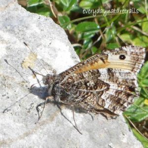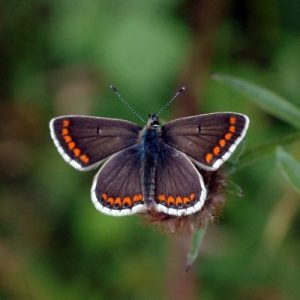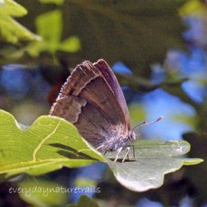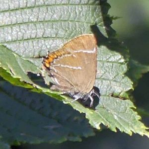 The Hairstreaks are named for the fine white streaks on the underside of their wings and have short tails on their hindwings. They can be tricky to spot as they frequent trees and shrubs, often the tops, so most often seen as small dots above the tree canopy.