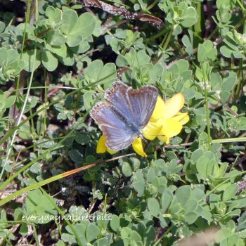 Members of this family are small and most are brightly coloured with a metallic sheen to the upperside of their wings. The Hairstreaks, named for the fine streaks on the undersides of their wings, have short ‘tails’ on their hind wings, which are frequently missing in individuals I’ve seen, probably lost to a bird attempting to grab it in its beak. The sexes are often very different; female blues are usually brown and nothing like the males. Hairstreaks usually frequent trees and shrubs and are notoriously difficult to spot, but most coppers and blues fly close to the ground.