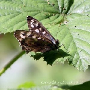 The Speckled Wood is mightily territorial and patrols up and down stretches of hedge, woodland edge and woodland rides. They often perch on the outer leaves of trees or shrubs, flying out determinedly to challenge anything and everything it perceives as an intruder, albeit a bee, another species of butterfly or a bird.