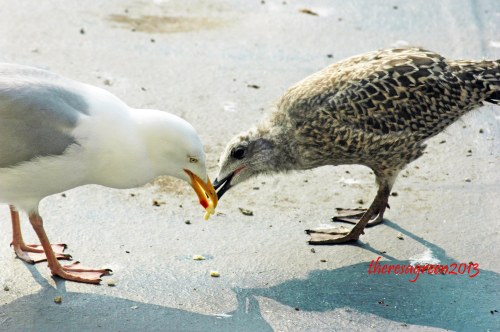 The parent gulls changed their feeding behaviour today too; rather than the young ones begging and tapping a parent’s beak to bring forth food, the parents now arrived with food which they deposited some distance away from the young ones who then had to ‘find’ it for themselves.