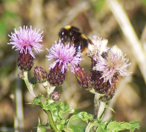 I headed a bit round to the open grassy area that this time last year was covered in purple flowered knapweed and buzzing with dozens of insects, but now was looking quite bedraggled and bereft of colourful blooms. There was some knapweed, but hardly enough to go around apparently as most of the flowers had more than one bumblebee or hoverfly competing for its bounty.