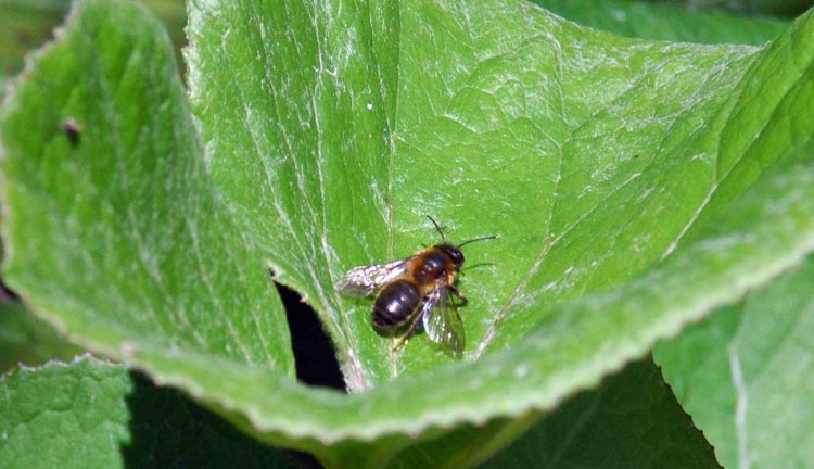 I had a good look around for signs of mining bees and eventually spotted just one feasting on a celandine. It’s difficult to tell from this photograph, but based on what little I’ve learnt about these tiny bees and help I’ve had with identifying others found in this locality, it’s likely that this is an Orange-tailed Mining Bee.