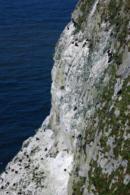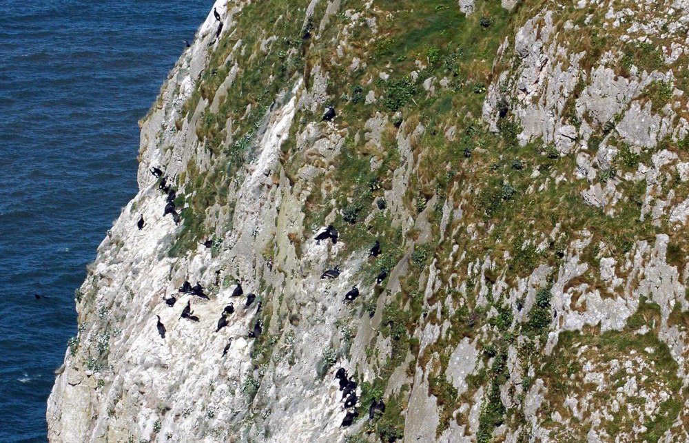 Looking over the edge of the cliff for signs of my target birds I saw what I thought were Cormorants until I saw the raised crest of one and realised they were Shags.They were far below me, so the quality of the image is not great, but you can see what they are from it.