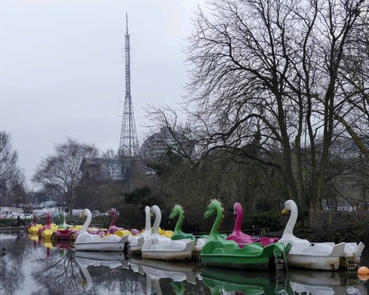 Alexandra Palace & Park, ducks and geese, Hornsey, January, mute swan, overwintering birds, pochard, redwing, St Mary's Church Tower, urban wildlife, winter