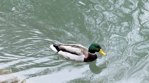 I didn’t linger on the side of the boating lake, but did spot the all-white duck out swimming with a Mallard drake. Are they a pair I wonder?
