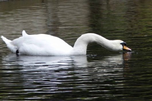Despite their calm and graceful demeanour, Mute Swans may be extremely quarrelsome and will bully smaller species. In the breeding season males stake out a large area of water, and as we witnessed at the end of last year, he defends this territory aggressively against all intruders. They are not entirely without a voice either, despite their name; when angry they hiss and snort and can occasionally manage to trumpet, albeit feebly.