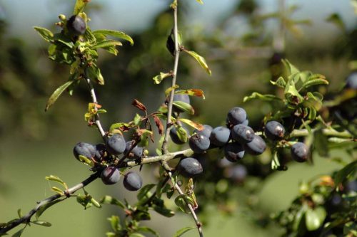 Some spurge laurel plants still have flowers, others flowers and forming fruits and some just fruits.