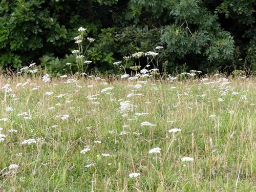 I round a bend in the track and see – sheep! Five naughty trespassing sheep! They are strictly banned from the reserve unless invited in as their indiscriminate grazing may damage or even destroy the rarer wildflowers that grow here. Fencing prevents them wandering into the higher part of the reserve from the rest of the Little Orme where they are not restricted, so I think they got in at this field level, no doubt irresistibly tempted by the sight of the lush long grass over here. I tell them they should return to their field, but can’t see where they may have got through and they pay me no heed anyway, just amble away showing me their bottoms.