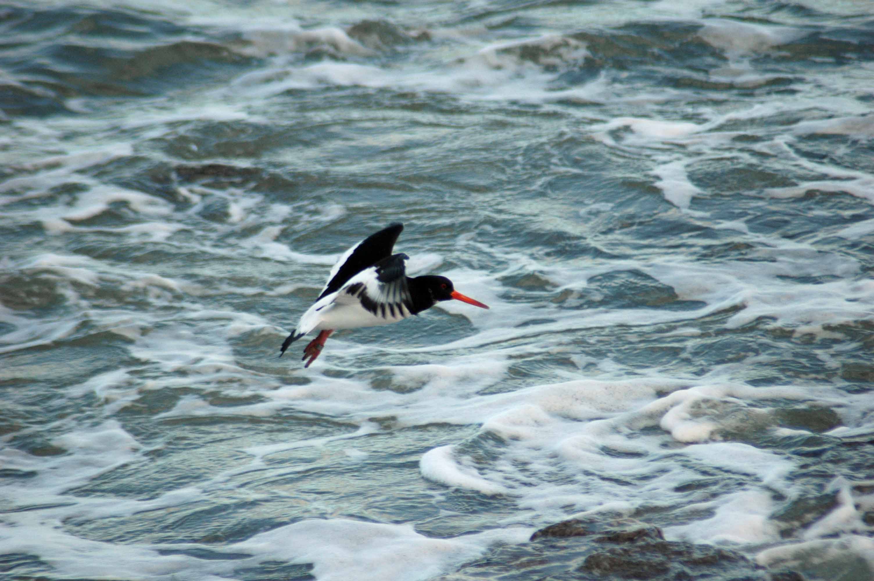 I must have looked away for a split second and missed the action, but next thing, the herring gull has the prize! It either snatched the mussel directly from the bill of the oystercatcher, or the oystercatcher dropped it momentarily and the gull grabbed it. The poor oystercatcher left the scene, probably in a huff, while the herring gull carried its ill-gotten gains away; now it just had to work out how to open it.