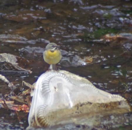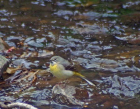 The grey wagtail is similar in size, shape and to some extent, behaviour, to the pied, or white wagtail, but has an appreciably longer tail. They are very attractive little birds with upperparts that are always blue-grey and a greenish-yellow rump contrasting with whitish underparts makes it distinctive. The breeding male is a brighter yellow than the female and has a black throat that is edged by whitish moustachial stripes. I had assumed the birds were a pair and thought the one I was watching was a female, but looking at my photographs there are definite moustachial stripes and the throat area looks quite dark: not black though.