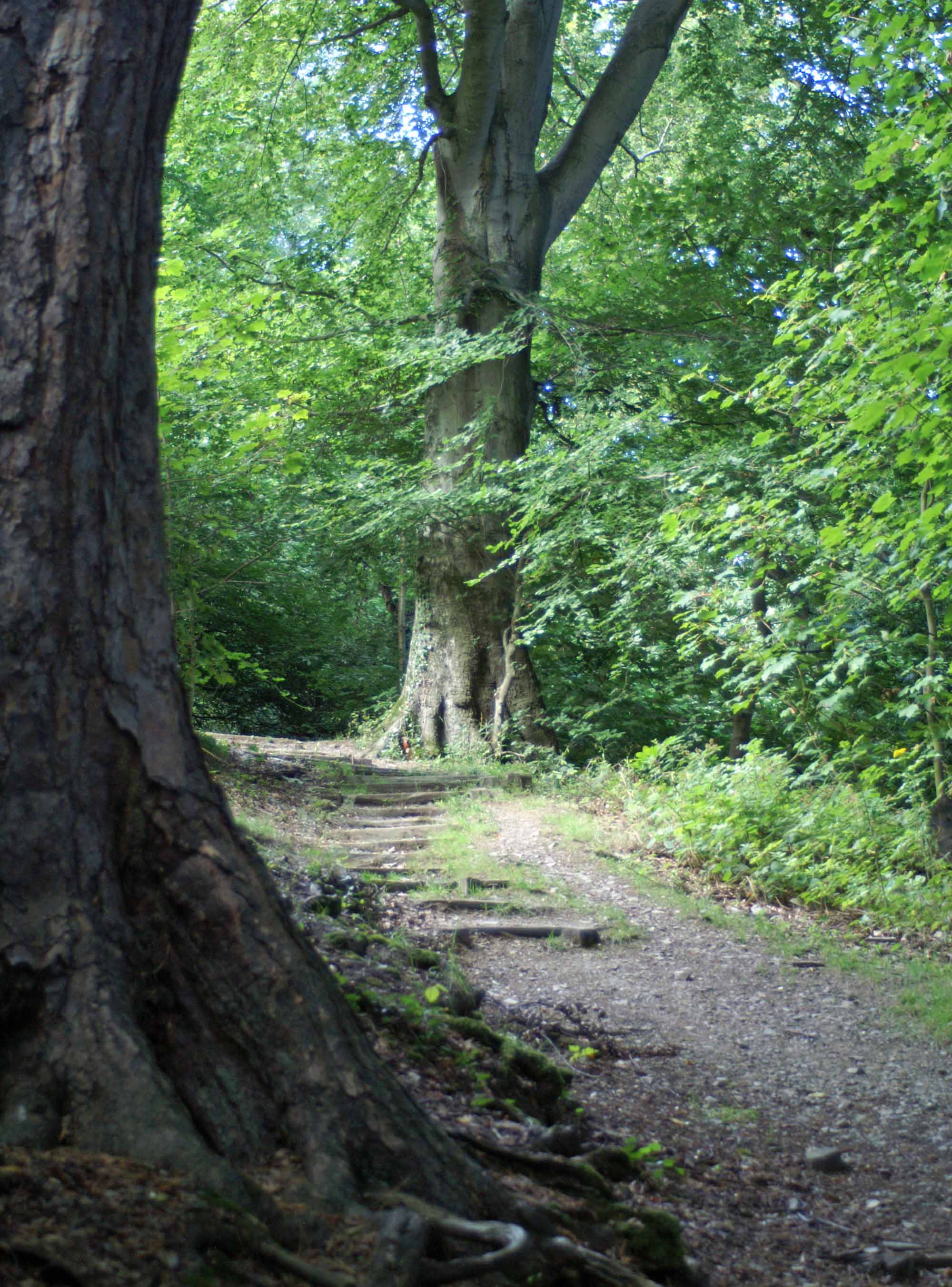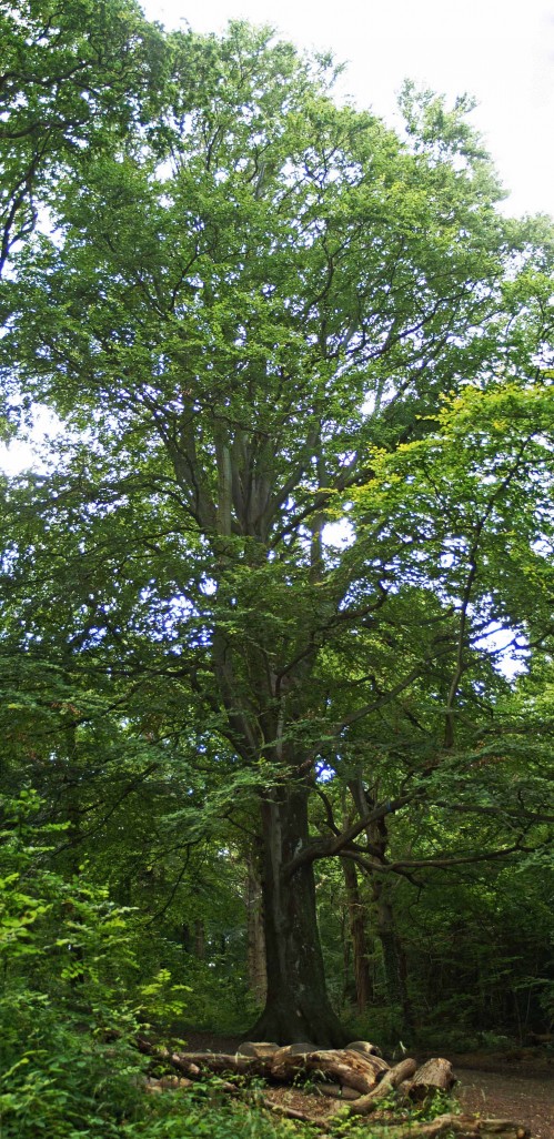 I wandered off the path towards a grove of huge Beech trees. At least one of the trees was multi-trunked and all were mightily tall.