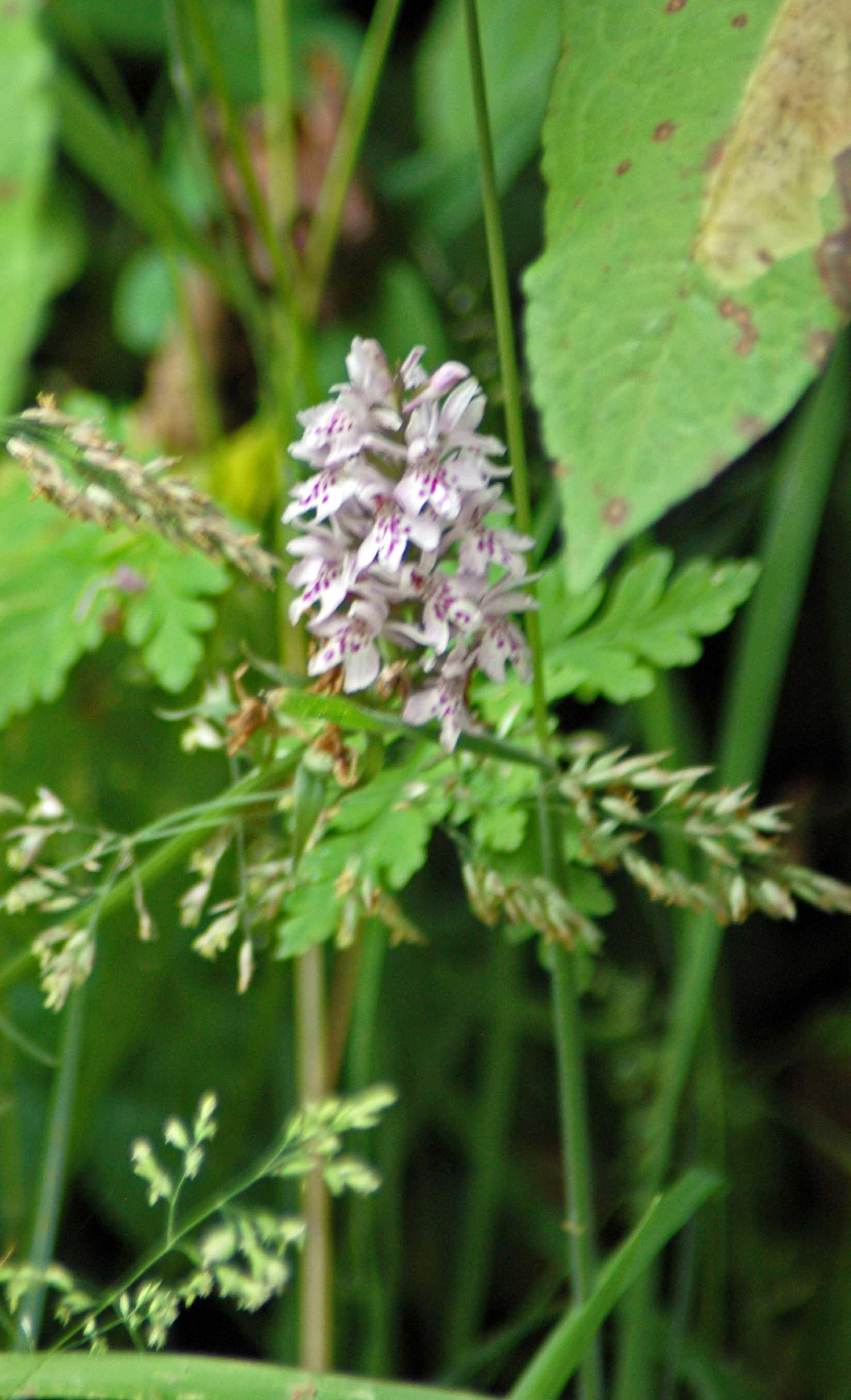 Amongst the grass and other tougher plants on the path edge a pretty Common Spotted Orchid pushed through.