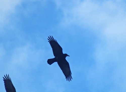 The lack of leaves, flowers, insects and other such distractions leaves space for noticing other things. The sculptural shapes of the trees, the textures of bark and lichen on twigs and branches. The sounds and glimpses of birds; a robin singing or perching, head cocked watching for movement in the leaf-litter below then pouncing down on it. A brief sight of a tree-creeper spiralling up a tree trunk. Tits calling to one another as they scrutinise trees for hidden prey, the gronk of a raven passing overhead. Woodpigeons flying on creaking wings then crashing in to land on the lookout for ripe ivy berries. Then, nearer to where there are houses below, argumentative magpies screeching and crows cawing harshly.