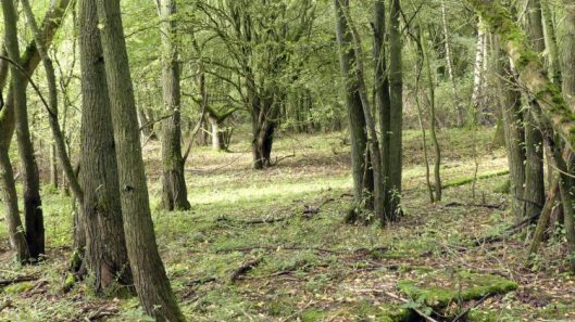 We wandered through the maturing woodland where the trees are mainly Ash and Oak with some Silver Birch. The ground beneath the trees is strewn only with fallen branches; it may be kept clear as there are numerous deep rectangular holes, their covers moved to the side and covered with moss. Quite hazardous if you don’t watch where you’re going. There are still intact brick and concrete-built shelters here too, their roofs are now camouflaged by vegetation, but the entrances are clear and accessible and it would seem watertight.